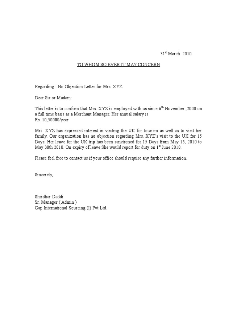 5:00 technical solution 12 391 просмотр. The no objection certificate from employer, as the name suggests is letter, provided by your employer stating that the company has no objection towards you traveling abroad. No objection certificate (noc) is a legal document, issued by an organization, institute, or an individual to say that they have no objection to the mentioned details in the document.