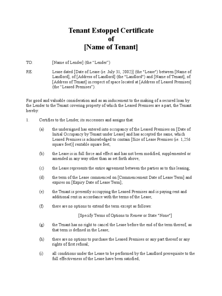 Creating a certificate of participation template is not complex as you may think. By definition, an estoppel certificate is a signed statement by a party certifying for another's benefit that certain facts are correct, as that a lease exists in this short article we covered the purpose of the tenant estoppel and the basic items included. Signed document establishing certain facts which the signing party may not later contradict, dispute, or recant. What is a strength of using a hashing function?