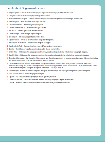 A certificate of origin is a document that certifies the country where the goods originated.