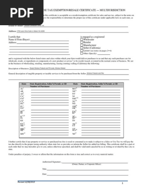 • this certificate may be used by purchasers or lessees who are purchasing or leasing vehicles that will be licensed as multijurisdictional vehicles or trailers for use with multijursdictional vehicles if they do. States that allow for resale exemptions either accept a. A resale certificate is an official document that easily instills confusion in many online resellers. Resale certificates are usually provided in a blanket form.